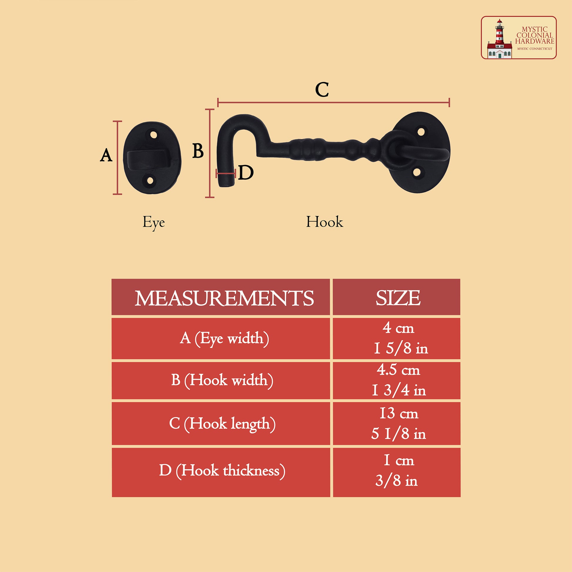 Black Wrought Iron Cabin Hook Eye 5.5" Long Large Decorative Privacy Hook Latches for Cabinet Window Kitchen Sliding Or Barn Doors : Pack of 2