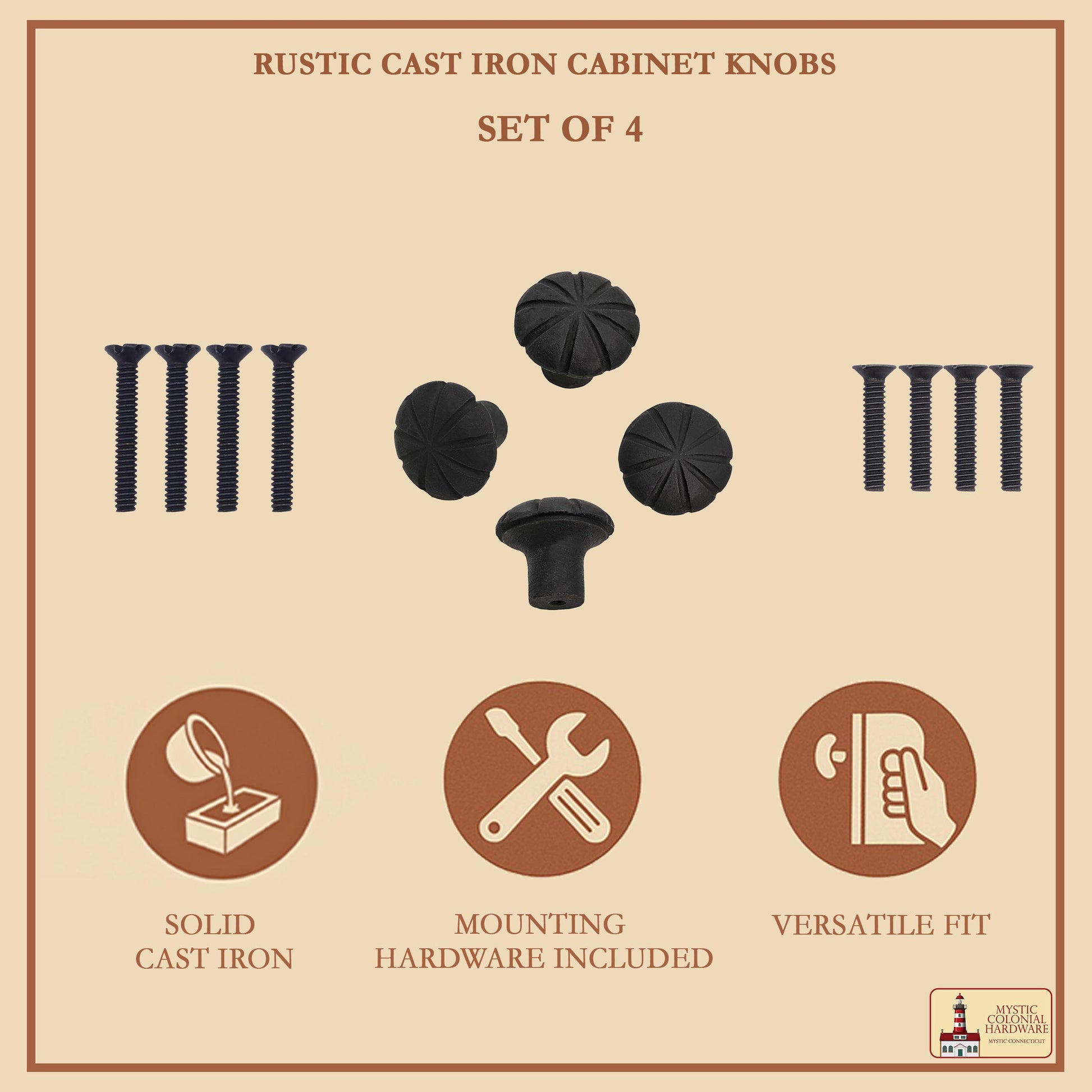 Hand Forged Iron Cabinet Knob Pull Antique Rustic Knobs for Kitchen Cabinet Drawer Pull Handles with Hardware: Pack of 4