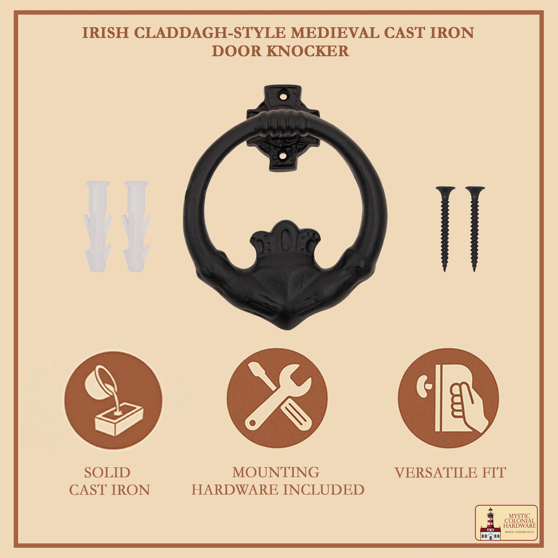 Claddagh Door Knocker Solid Forged Iron Victorian, Colonial, Retro, Steampunk, Gothic, Baroque Medieval