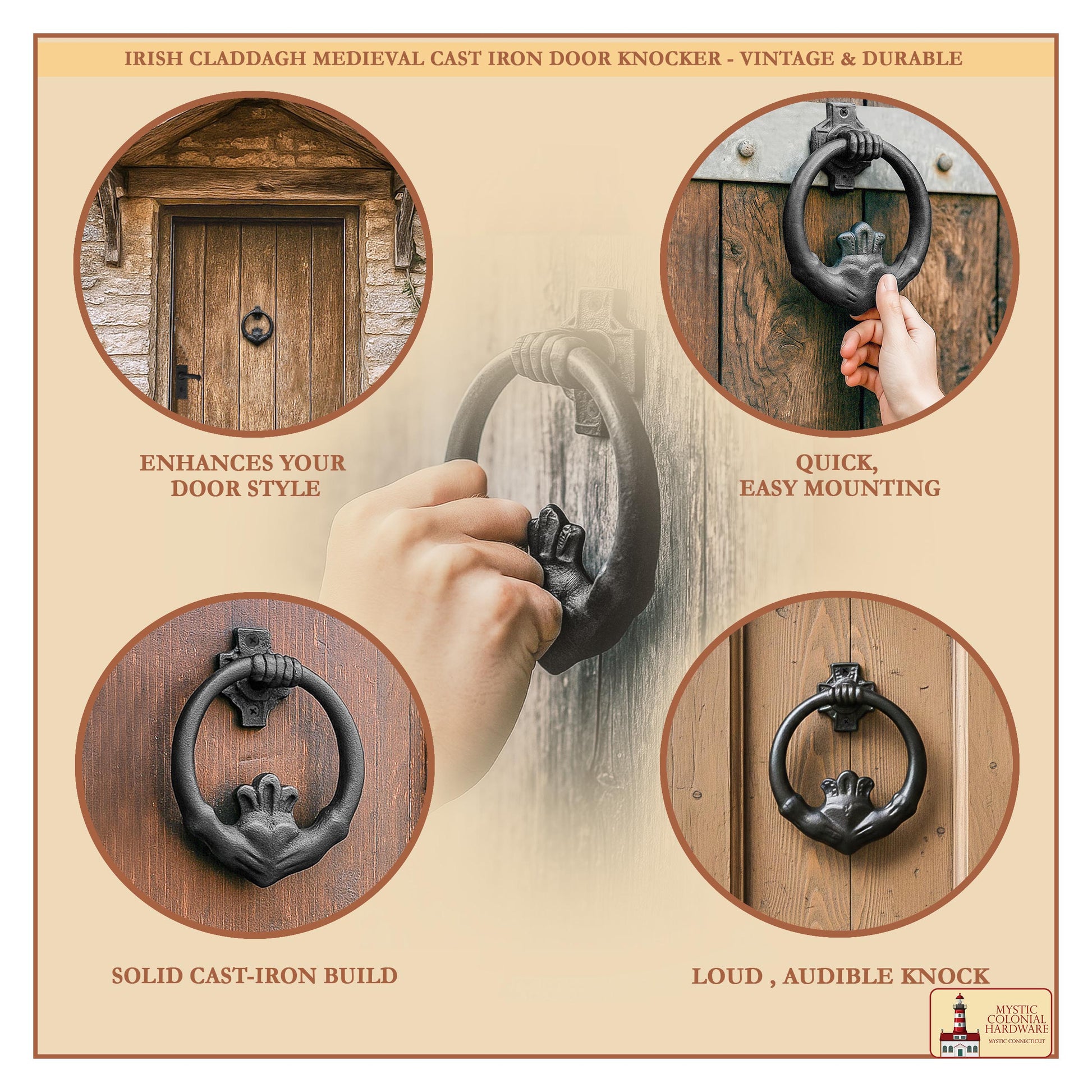 - ⭐Black Claddaghdoor knocker: a charming, old-world glint which is sure to capture the heart and imagination of anyone who lays eyes on it. Sturdy and durable, it’s sure to stand up against weather and daily wear and tear, too! SIZE: 5.3 inches x 4.3 inches ♦♦ Screws included
