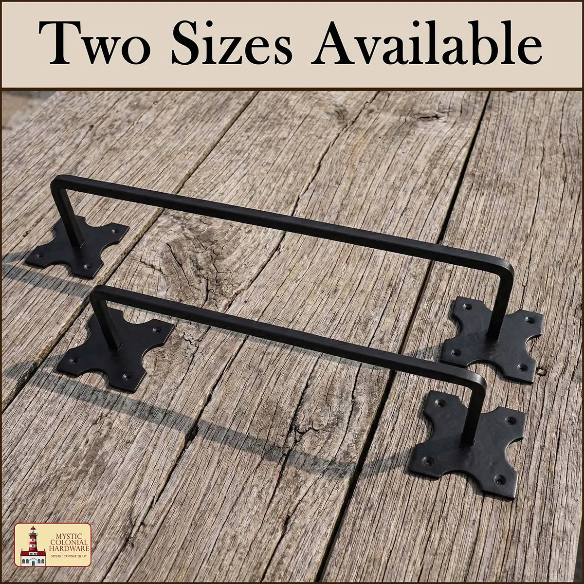 Mystic Colonial Hardware Iron Towel Bar – Hand-Forged Colonial Style Rack with Decorative Mounting Plates