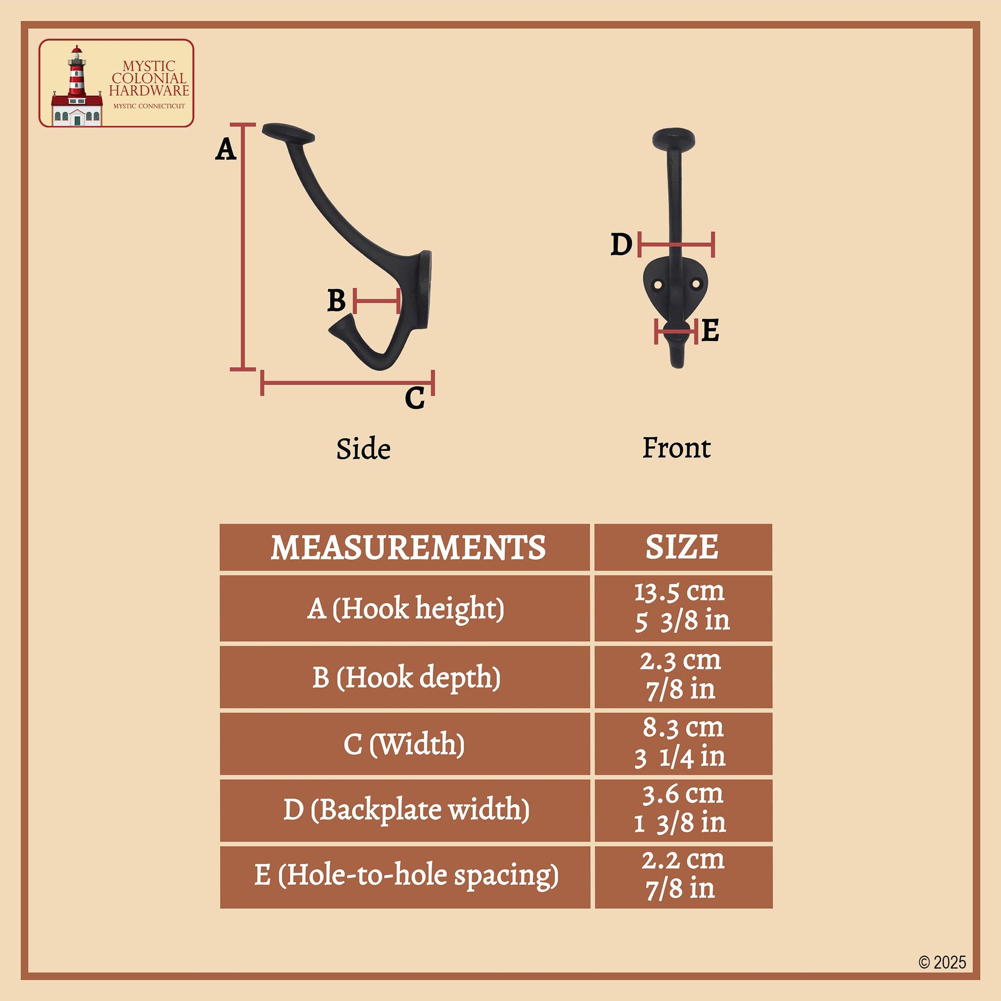 Rustic Cast Iron Wall Hooks Set of 2: Ideal for Victorian, Colonial, Retro, Steampunk, Gothic, and Baroque Settings (13.4x3.8) cm