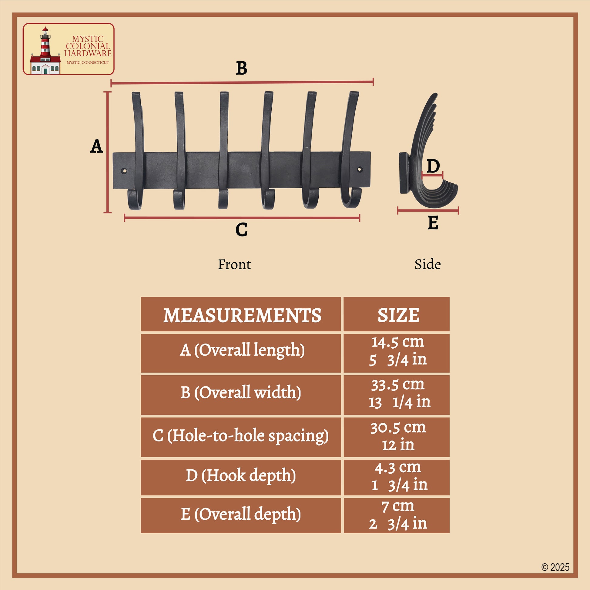 Rustic Hand Forged Iron Wall Hooks Set of 6: Ideal for Victorian, Colonial, Retro, Steampunk, Gothic, and Baroque Settings (32.5x14.4) cm