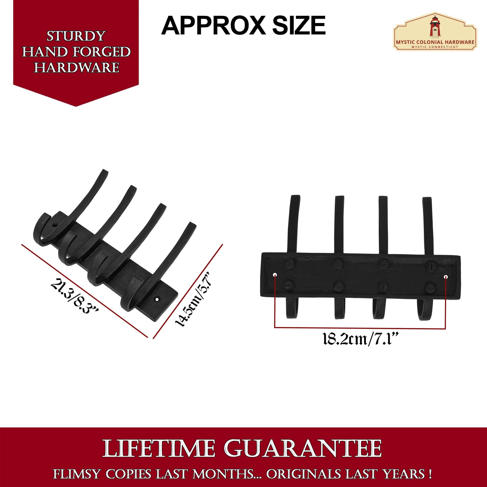 Rustic Hand Forged Iron Wall Hooks Set of 4: Ideal for Victorian, Colonial, Retro, Steampunk, Gothic, and Baroque Settings (21.3x14.5) cm